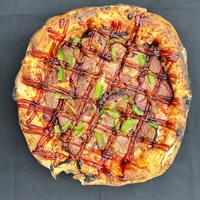 Pizza dengan hirisan streaky beef berlemak, mozzarella cair, bawang Holland, dan lada benggala segar. Gabungan tekstur dan rasa yang memukau untuk pencinta daging berkualiti.
